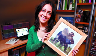 La labor investigadora de Paula se centra en el seguimiento diario de un grupo de chimpancés para conocer sus hábitos alimentarios y de nidificación.