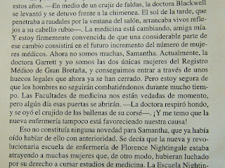 A lo largo de la novela las hermanas Blackwell se convierten en personajes de la narración, al igual que Florence Nightingale y Elizabeth Garrett Anderson y cuentan en primera persona  como consiguieron llegar a la universidad, y como vencieron los problemas que les surgieron para desarrollar su profesión.Todas ellas pioneras de la medicina.